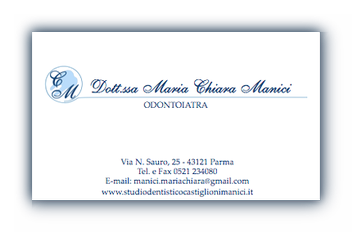 Dott.ssa Maria Chiara Manici Laurea specialistica in Odontoiatria e Protesi Dentaria presso l'Università di Parma Corso annuale Protesi Fissa - Dott. M.Fradeani Socio Ordinario A.N.D.I.